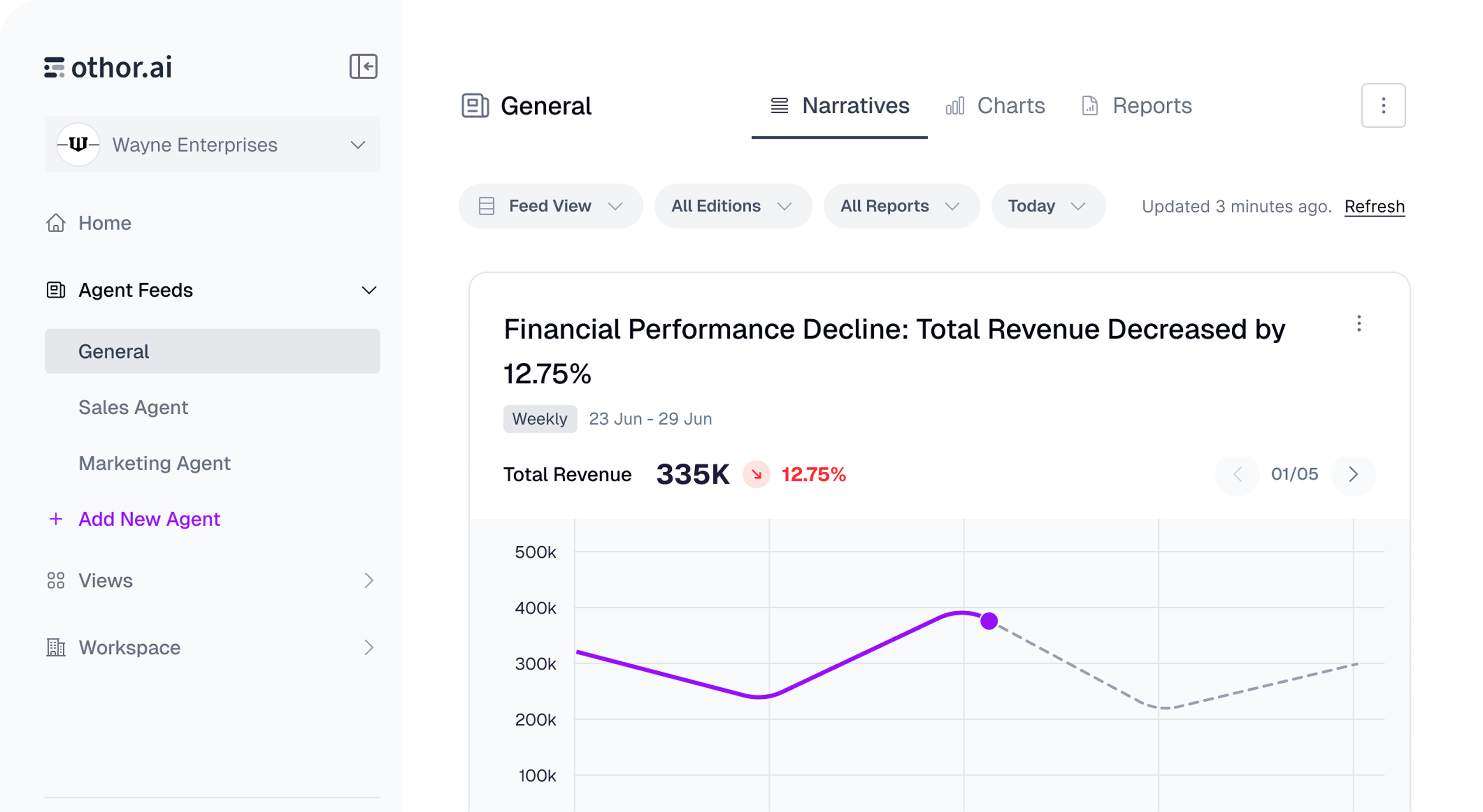 Get daily and weekly executive summaries from your data that highlight the most critical insights for C-level executives, board members, and senior management. Never miss a beat with AI-generated reports that surface key trends and forecasts.